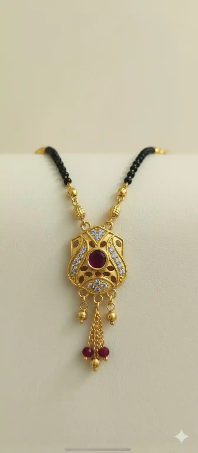 gold plated ad diamond studed floral design mangalsutra