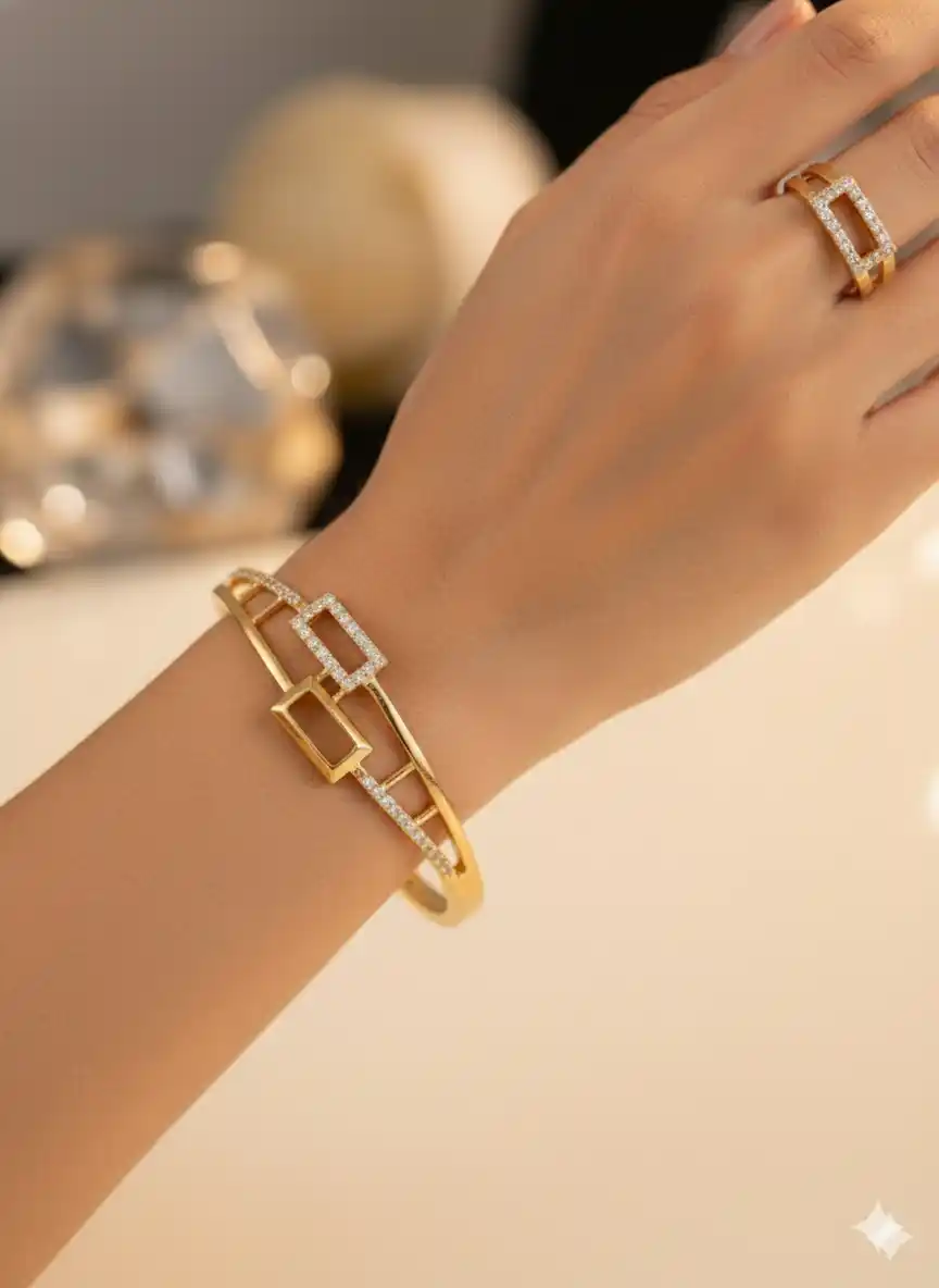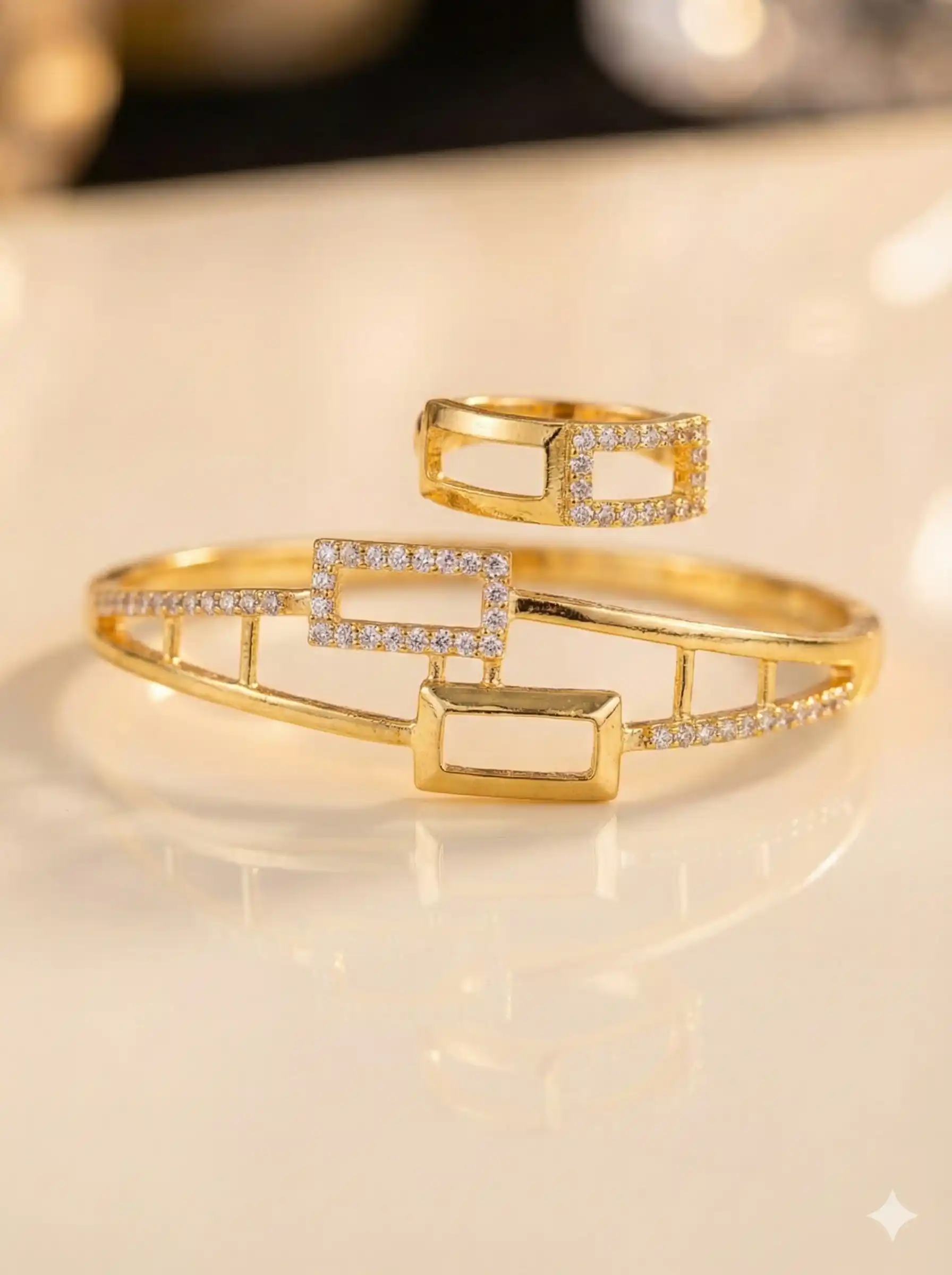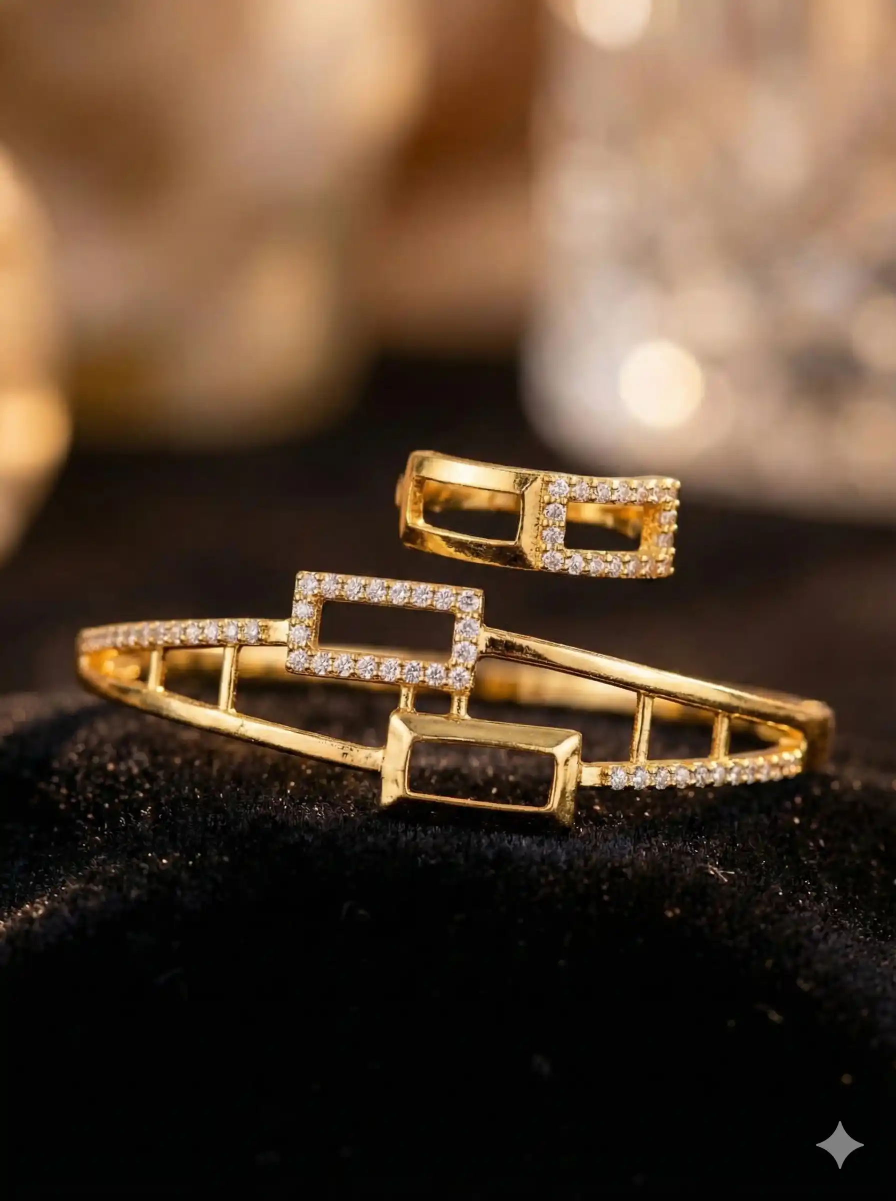micro gold plated ad diamond studded fancy adjustable bracelet with adjustable ring