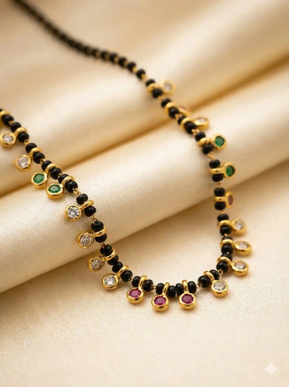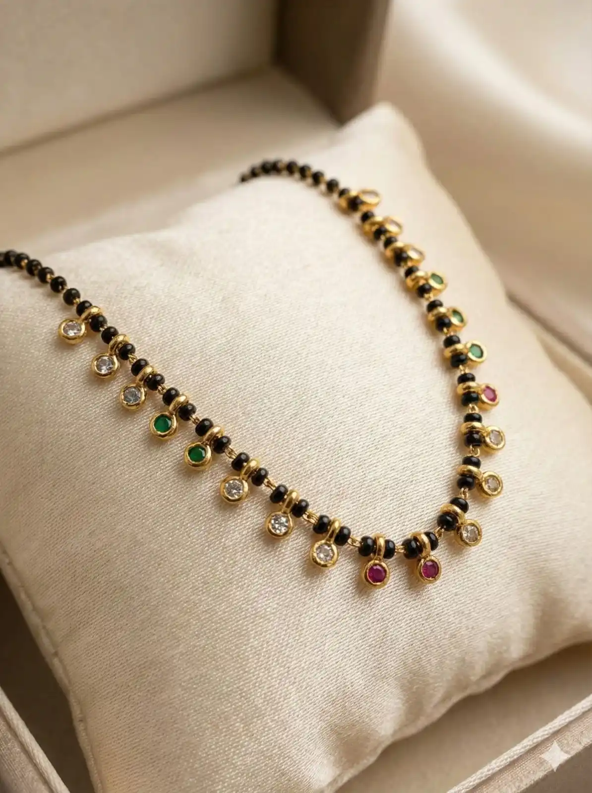 Micro Gold Plated Multi-Colour AD Beaded Mangalsutra – Elegant Daily Wear Design