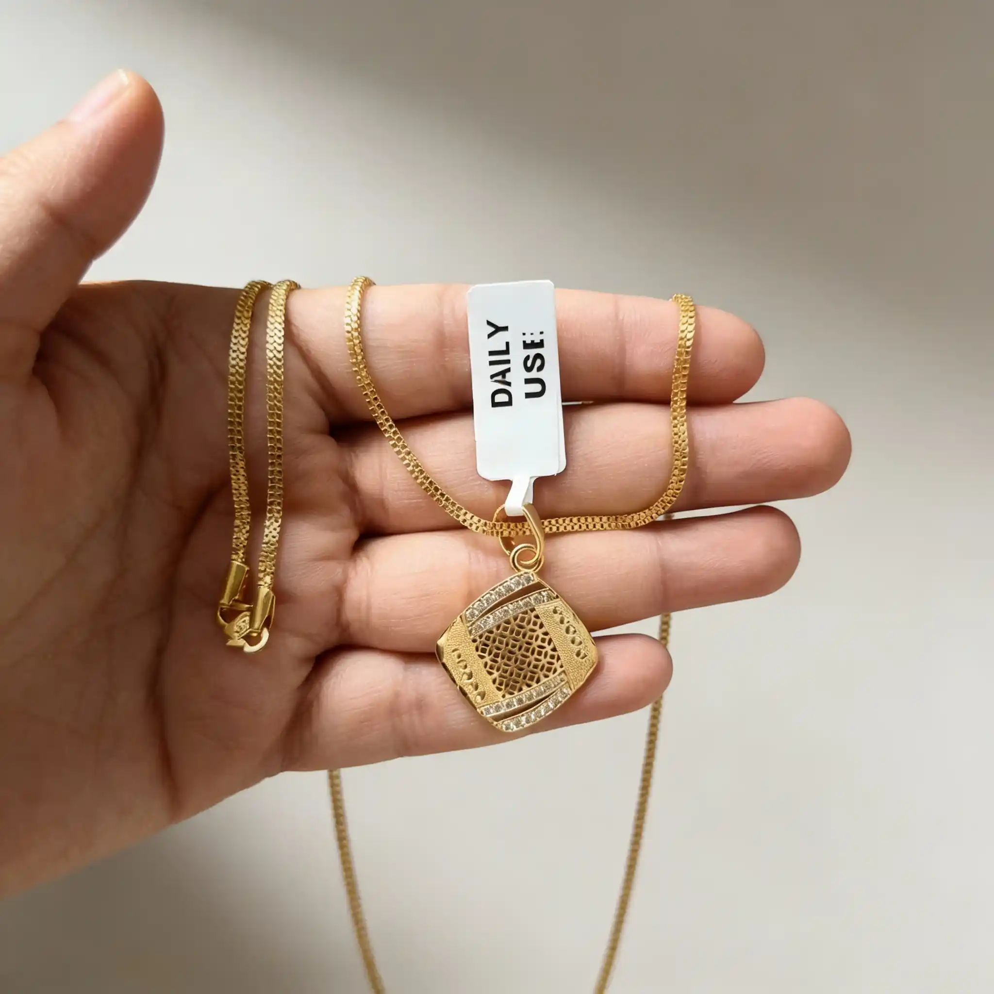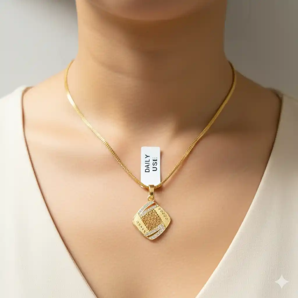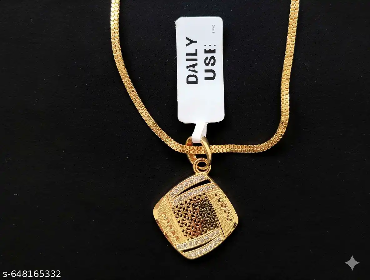 micro gold plated daily wear ad diamond studed fancy square pendant with 18 inches chain