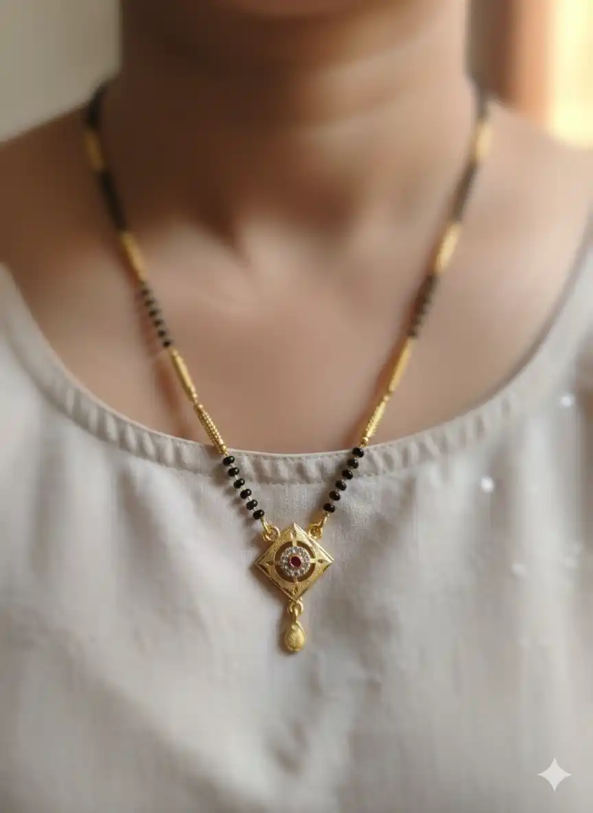 Classic Square Pendant Gold plated ad diamond studed fancy 18 inches mangalsutra