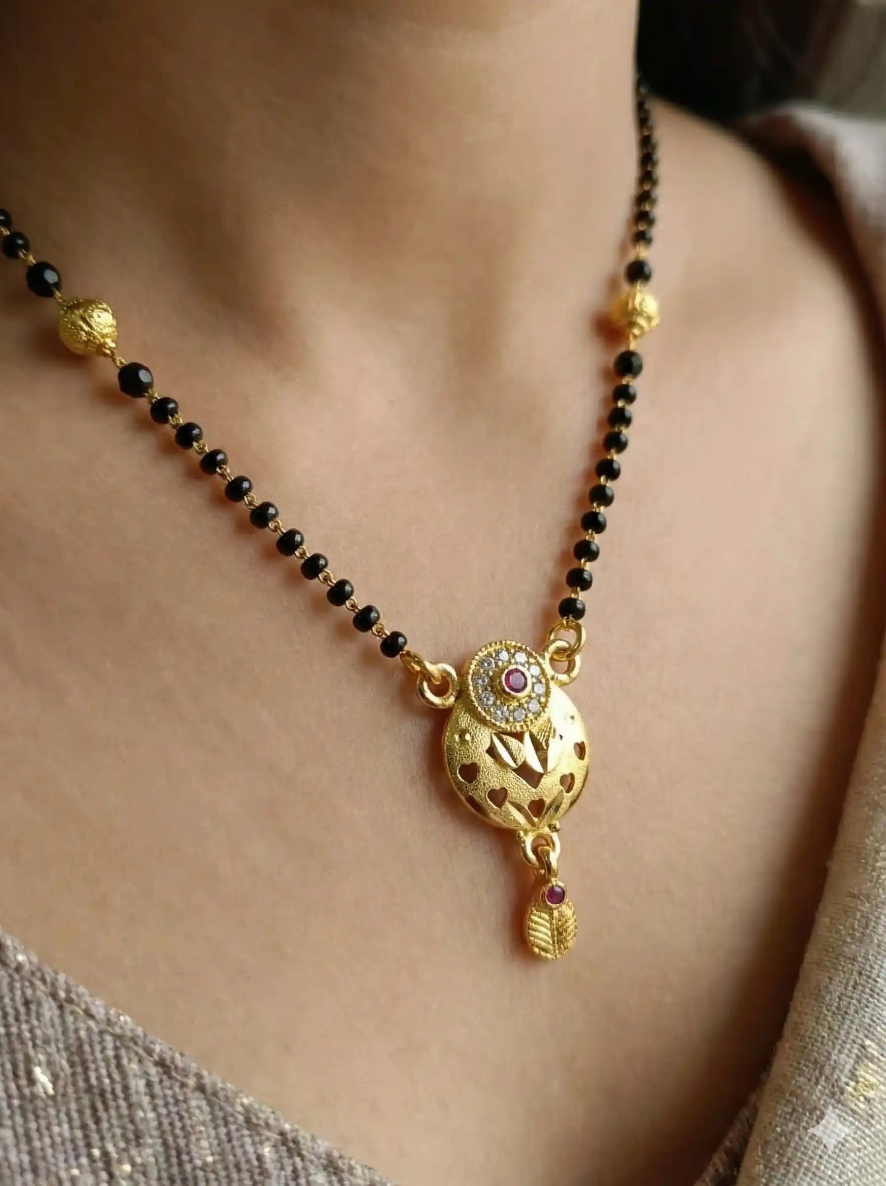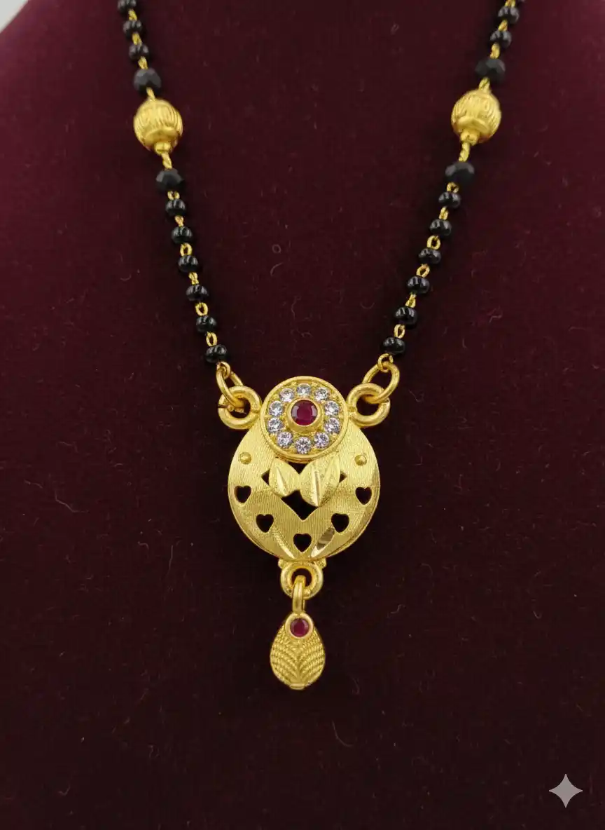 Traditional Heart-Cut Gold Mangalsutra with Ruby & Stone Detailing(18 inches)