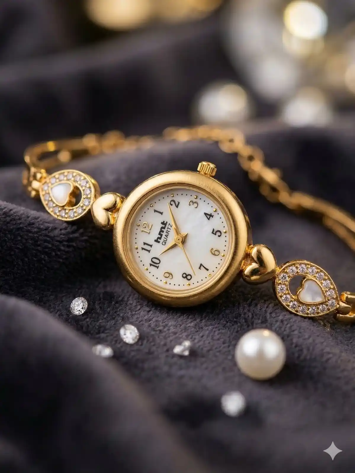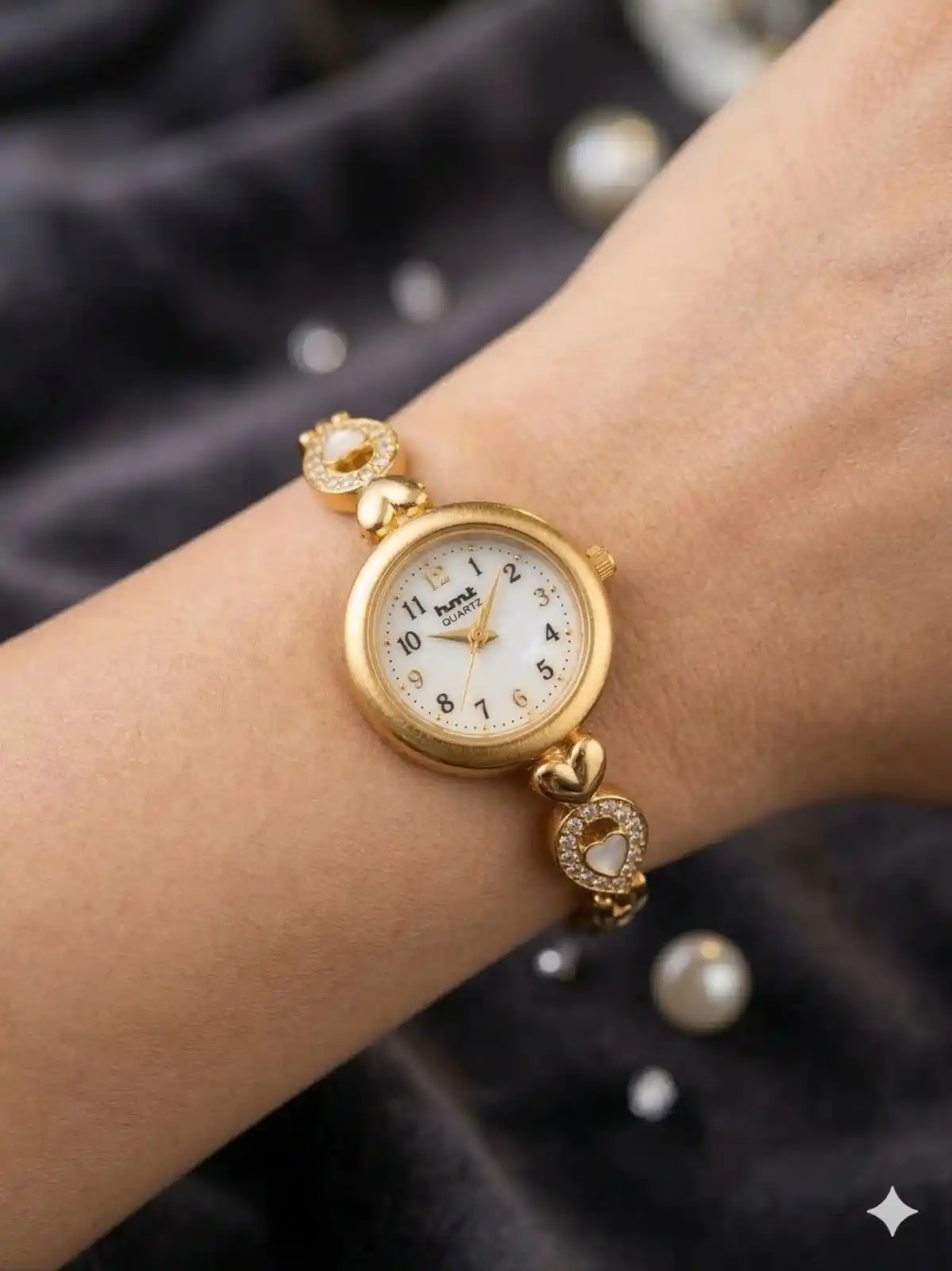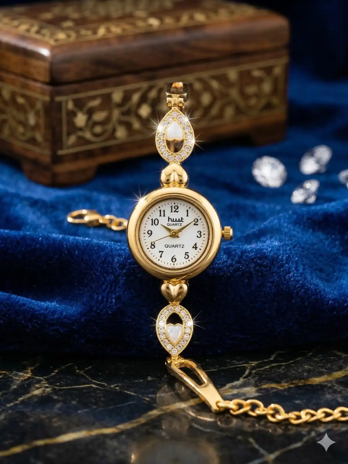 Elegant Gold-Tone Heart Crystal Bracelet Watch for Women