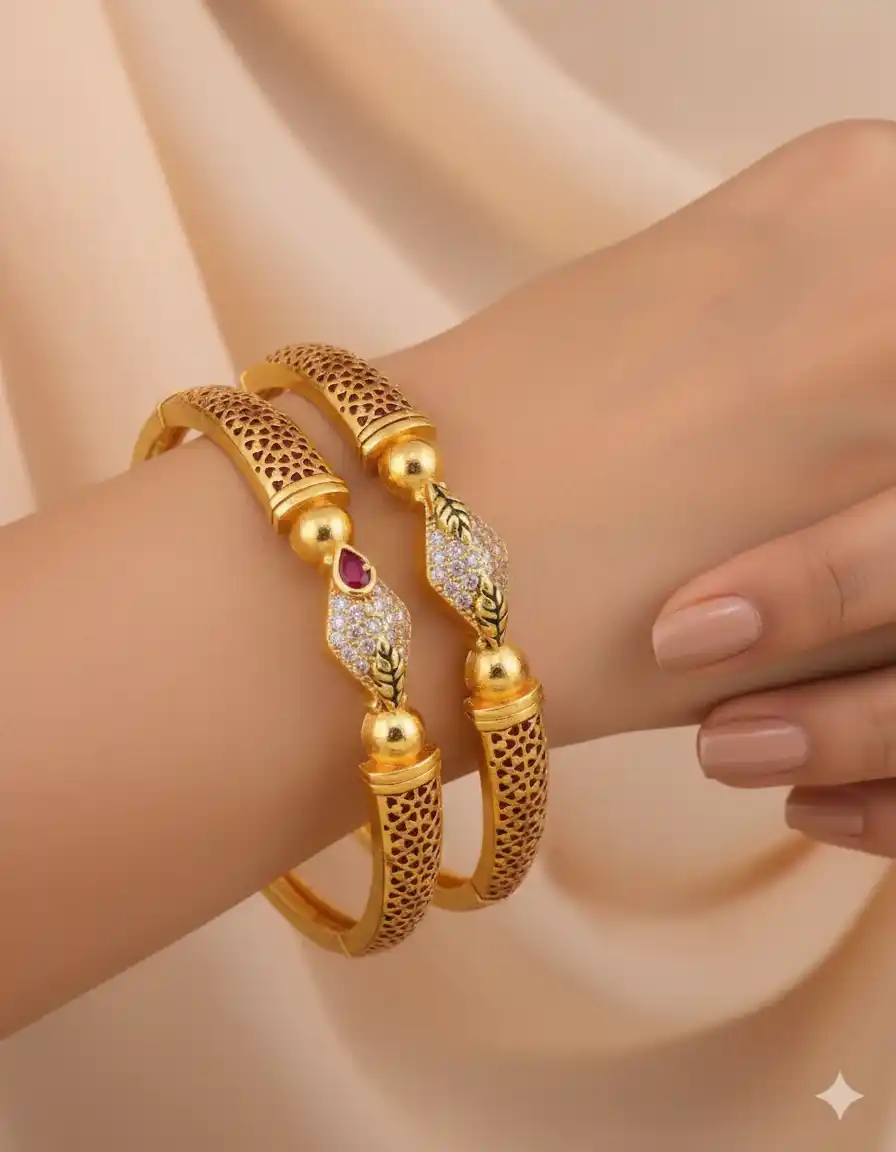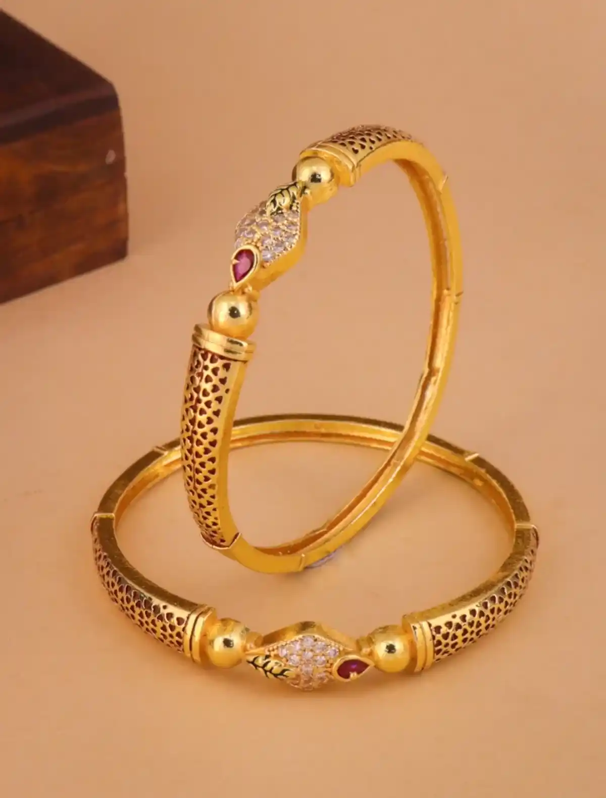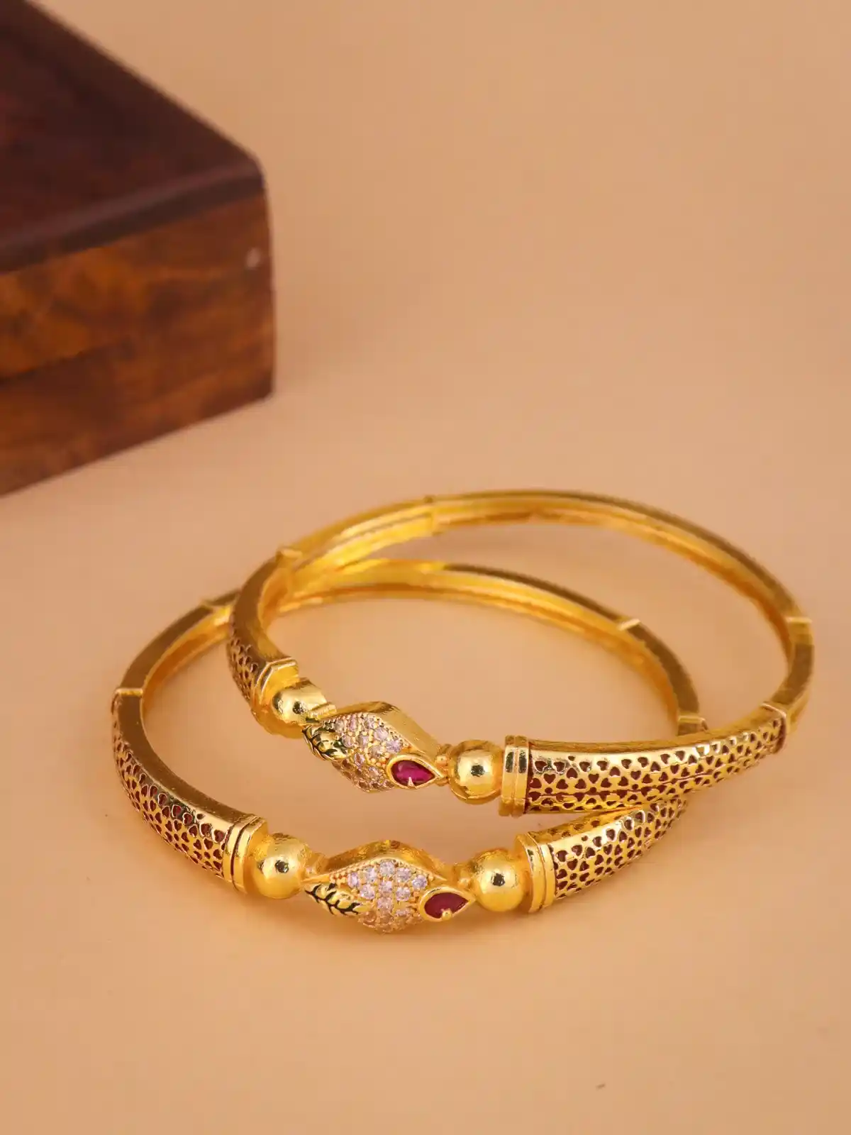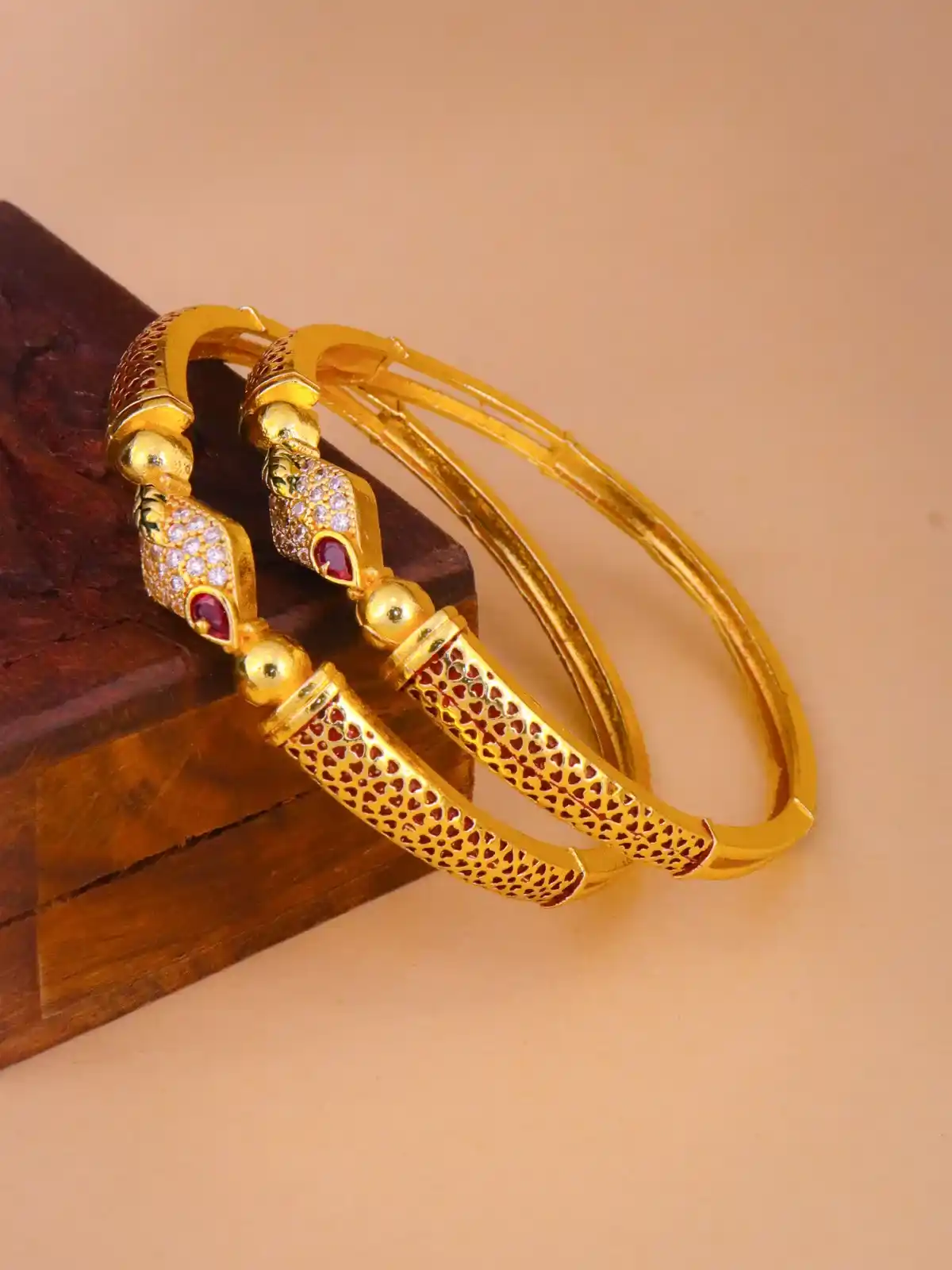 Royal Gold-Finish Designer Bangles with Ruby & Diamond-Style Accents